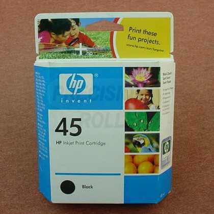 Genuine 45 Black Inkjet Cartridge for HP OfficeJet T65xi; Ink - Genuine HP Brand; HP 45 / 51645A; Color: Black